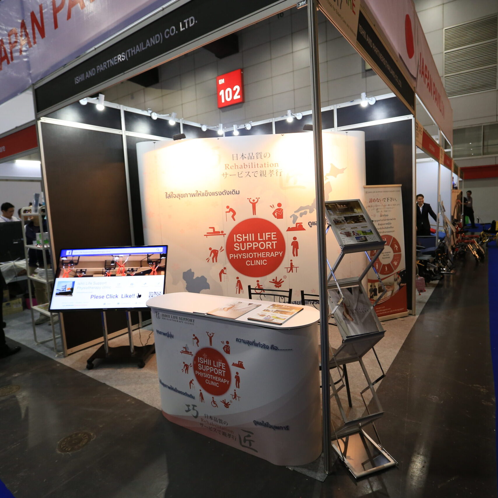 パンフレットホルダー、カウンターテーブル、バックドロップなど組み立て式となっている為、未使用時はコンパクトに収納可能です。