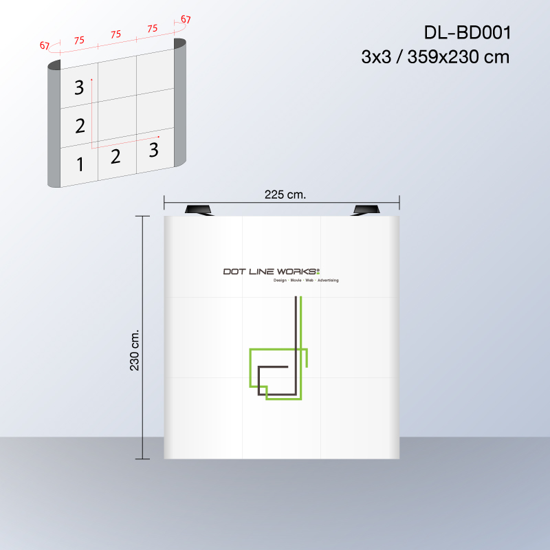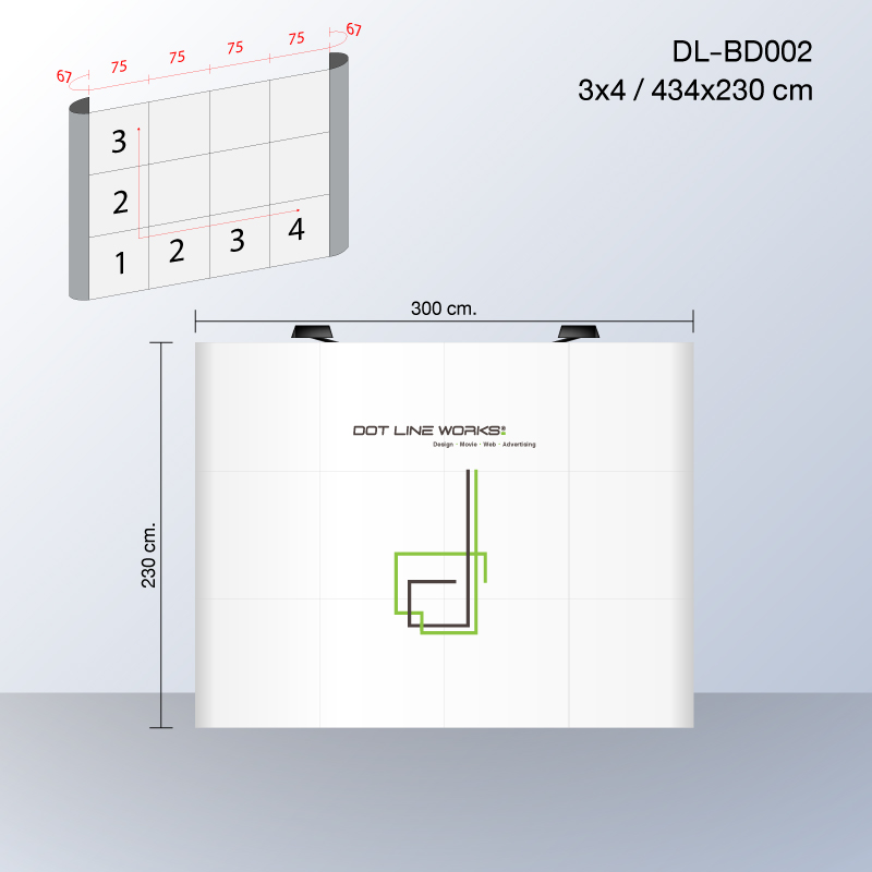 - Back Drop : 359×230, 434×230 cm, 509×230 cm